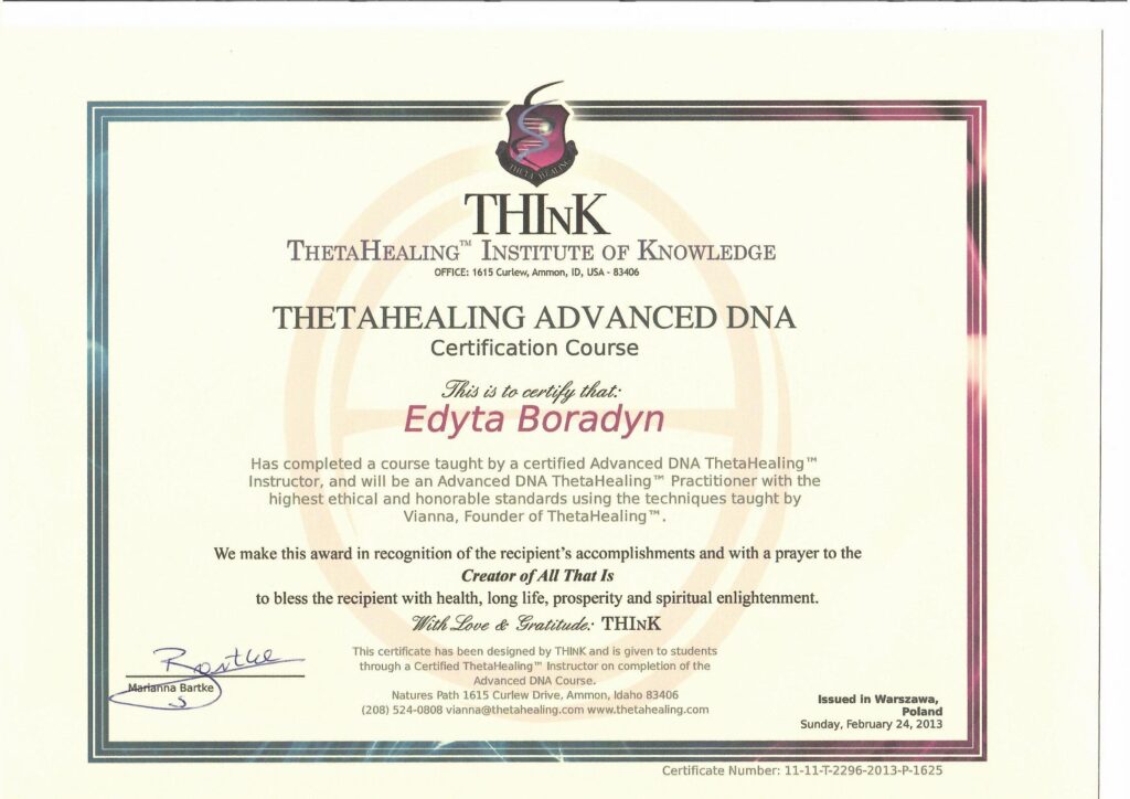 certyfikaty Thetahealing®